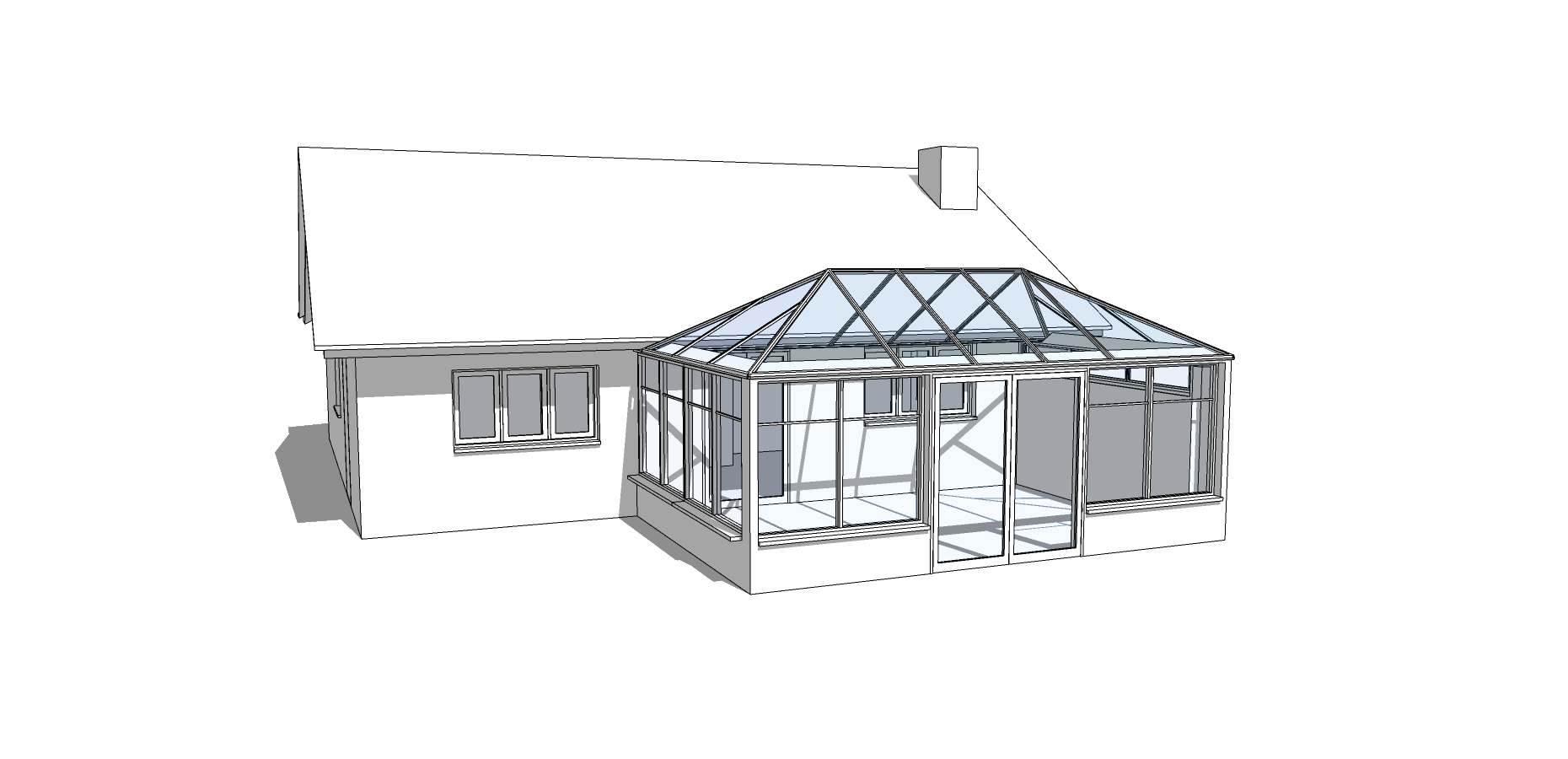To replace the large conservatory at the rear of the house with a kitchen/dinning room extension, with a glazed gable that connects well with the garden