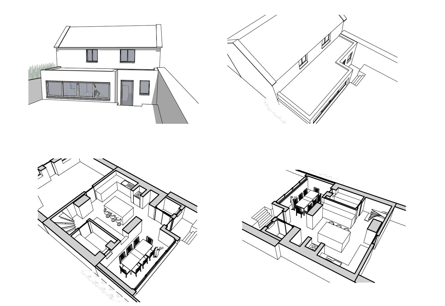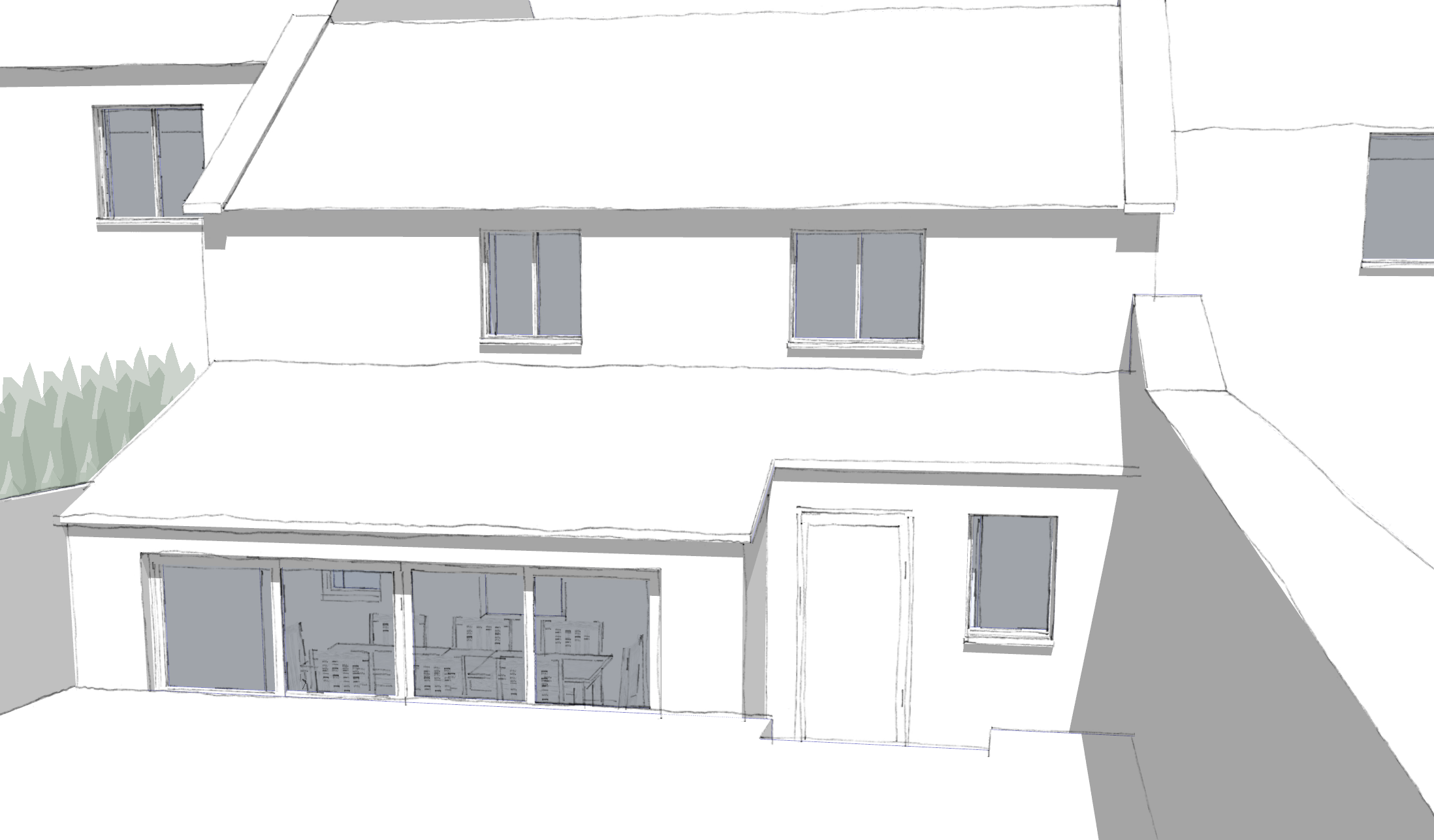 The original brief was for a flat roof extension, a pitched roof extension was also drawn to consider any benefits or constraints.