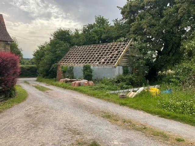 Replacing a dilapidated store building with a oak frame garage and carport